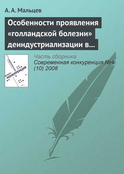 Подробная информация о книге «Особенности проявления «голландской болезни» деиндустриализации в современной российской и зарубежной практике А. А. Мальцев». Сайт не предоставляет возможности читать онлайн или скачать бесплатно книгу «Особенности проявления «голландской болезни» деиндустриализации в современной российской и зарубежной практике А. А. Мальцев».