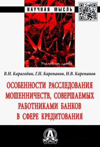 | Полное название книги | Григорий Николаевич Карепанов, Валерий Николаевич Карагодин, Николай Васильевич Карепанов Особенности расследования мошенничеств, совершаемых работниками банков в сфере кредитования |