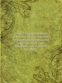 | Полное название книги | Коллектив авторов Отчет Государственного контроля по исполнению Государственной росписи и финансовых смет. Объяснит. зап. к Отчету за 1908 г |