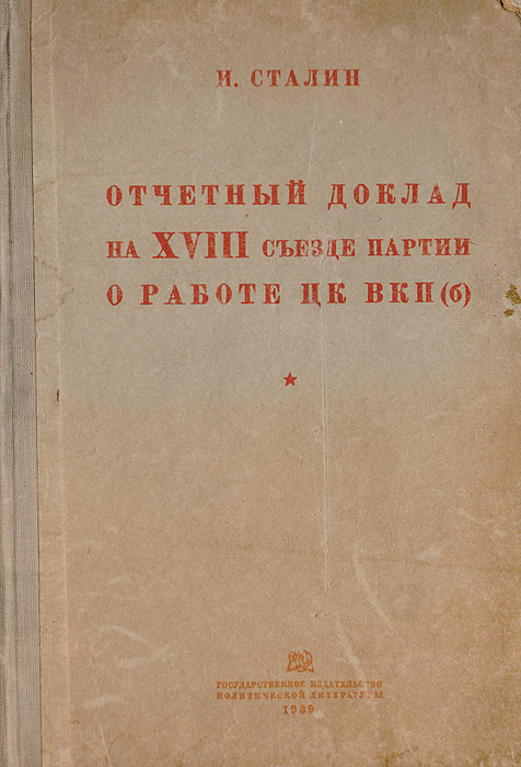 | Полное название книги | Иосиф Сталин Отчетный доклад на XVIII съезде партии о работе ЦК ВКП (б) |