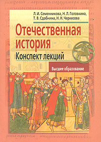 | Полное название книги | Т. В. Сдобнина, Л. И. Семенникова, Н. Л. Головкина, Н. Н. Черкесова Отечественная история. Конспект лекций |