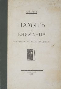 | Полное название книги | Кони Анатолий Федорович Память и внимание. Из воспоминаний судебного деятеля |
