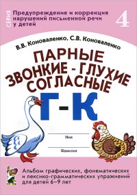 | Полное название книги | С. В. Коноваленко, В. В. Коноваленко Парные звонкие-глухие согласные Г - К. Альбом графических, фонематических и лексико-грамматических упражнений для детей 6-9 лет |