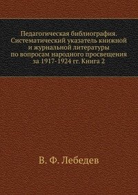 | Полное название книги | В. Ф. Лебедев Педагогическая библиография. Систематический указатель книжной и журнальной литературы по вопросам народного просвещения за 1917-1924 гг. Книга 2 |