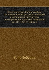 | Полное название книги | В. Ф. Лебедев Педагогическая библиография. Систематический указатель книжной и журнальной литературы по вопросам народного просвещения за 1917-1924 гг. Книга 3 |