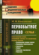 | Полное название книги | М. М. Ковалевский Первобытное право. Семья. Происхождение брака, древнейшие способы его заключения, брачные подарки |