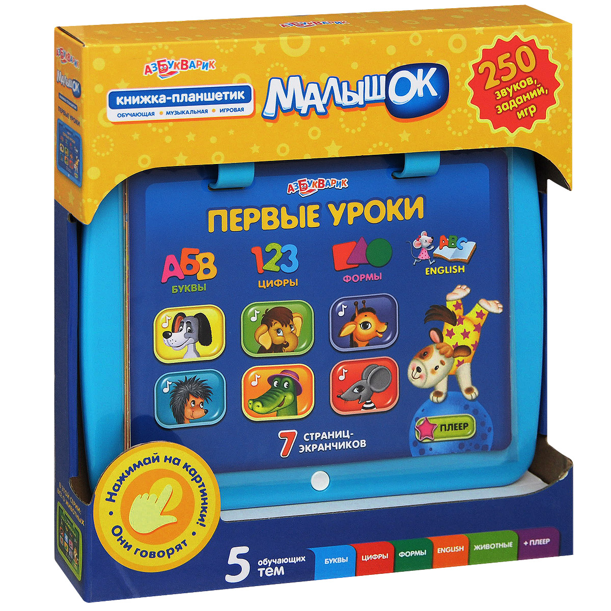 Первые уроки. Книжка-планшетик-малышок. 7 страниц-экранчиков. + музыкальный плеер. Романова Е.