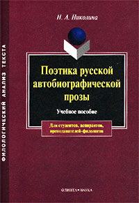 | Полное название книги | Н. А. Николина Поэтика русской автобиографической прозы. Учебное пособие для студентов, аспирантов, преподавателей-филологов |