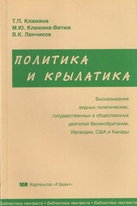 | Полное название книги | М. Ю. Клюкина-Витюк, В. К. Ланчиков, Т. П. Клюкина Политика и крылатика. Высказывания видных политических, государственных и общественных деятелей Великобритании, Ирландии, США и Канады |