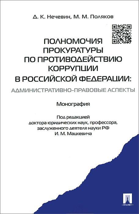 | Полное название книги | Д. К. Нечевин, И. М. П/р Мацкевича Полномочия прокуратуры по противодействию коррупции в РФ: административно-правовые аспекты. Монография.-М.:Проспект,2015 |
