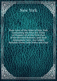 | Полное название книги | New York Poor Laws of the State of New York Containing the First Six Titles of Chapter 20 of the First Part of the Revised Statutes, and Such Subsequent Acts . Are Added Suitable Forms with Notes and |