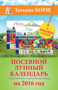 | Полное название книги | Татьяна Борщ Посевной лунный календарь в самых понятных и удобных цветных таблицах на 2016 год (+ наклейки) |