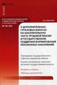 | Полное название книги | Д. А. Вавулин Постатейный комментарий к Федеральному Закону "О дополнительных страховых взносах на накопительную часть трудовой пенсии и государственной поддержке формирования пенсионных накоплений&qu |