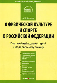 | Полное название книги | А. Н. Борисов Постатейный комментарий к Федеральному закону "О физической культуре и спорте в Российской Федерации" |