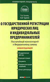 | Полное название книги | Т. А. Гусева, А. В. Чуряев Постатейный Комментарий к Федеральному закону "О государственной регистрации юридических лиц и индивидуальных предпринимателей" |