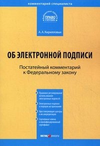 | Полное название книги | А. А. Кирилловых Постатейный комментарий к Федеральному Закону "Об электронной подписи" |