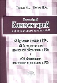 | Полное название книги | Тарцан Н. В., Попов Н. А. Постатейный комментарий к федеральным законам РФ `О Трудовых пенсиях в РФ`, `О Государственном пенсионном обеспечении в РФ` и `Об обязательном пенсионном страховании в РФ` |