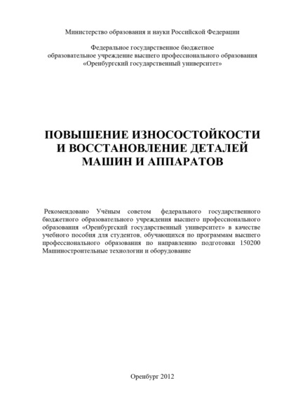 | Полное название книги | Коллектив авторов Повышение износостойкости и восстановление деталей машин и аппаратов |