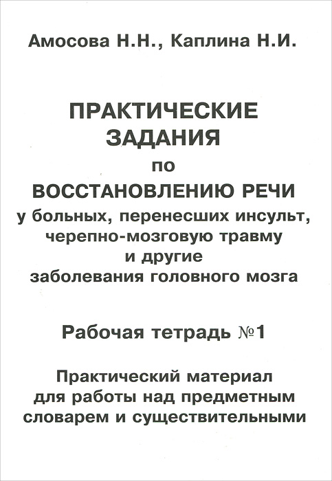 | Полное название книги | Н. Н. Амосова, Н. И. Каплина Практические задания по восстановлению речи у больных, перенесших инсульт, черепно-мозговую травму и другие заболевания головного мозга. Рабочая тетрадь №1. Практический материал для работы н |