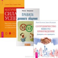 Более подробную информацию о книгах, вошедших в комплект, вы сможете узнать, пройдя по ссылкам: "Правила делового общения. 33 "нельзя" и 33 "можно"" , "Сотрудничество вместо принуждения. Доверять или проверять" , "Магическая сила успеха. Как стать лидером в деловом мире и в повседневной жизни" . Это и многое другое вы найдете в книге Правила делового общения. Сотрудничество вместо принуждения. Магическая сила успеха (комплект из 3 книг) (Нина Зверева, Юрий Кузнецов, Лариса Велькович, Хосе Стивенс, Лина Стивенс)