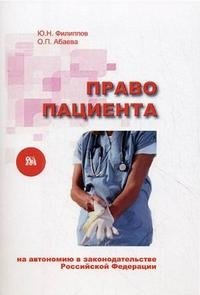 | Полное название книги | О. П. Абаева, Ю. Н. Филиппов Право пациента на автономию в законодательстве Российской Федерации |