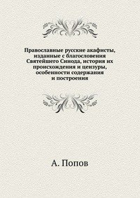 | Полное название книги | А. Попов Православные русские акафисты, изданные с благословения Святейшего Синода, история их происхождения и цензуры, особенности содержания и построения |
