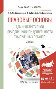 | Полное название книги | А. В. Зубач, О. А. Сафоненкова, П. Н. Сафоненков Правове основы административной юрисдикционной деятельности таможенных органов. Учебник для бакалавриата и магистратуры |