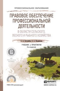 | Полное название книги | Е. А. Позднякова, С. А. Боголюбов Правовое обеспечение профессиональной деятельности в области сельского, лесного и рыбного хозяйства. Учебник и практикум для спо |