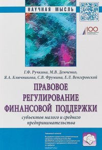 | Полное название книги | Ярославна Ключникова, Максим Демченко, Гульнара Ручкина, Евгений Венгеровский, Светлана Фрумина Правовое регулирование финансовой поддержки субъектов малого и среднего предпринимательства |