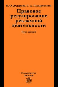 | Полное название книги | Б. О. Дударова, С. А. Пузыревский Правовое регулирование рекламной деятельности. Курс лекций |