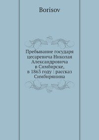 | Полное название книги | Борисов Пребывание государя цесаревича Николая Александровича в Симбирске, в 1863 году: рассказ Симбирянина |