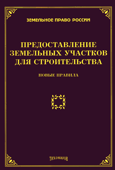| Полное название книги | М. Ю. Тихомиров Предоставление земельных участков для строительства: новые правила. Тихомиров М.Ю |