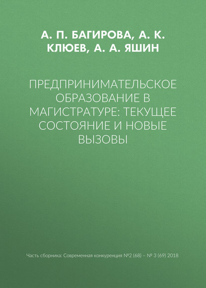 | Полное название книги | А. А. Яшин, А. К. Клюев, Анна Петровна Багирова Предпринимательское образование в магистратуре: текущее состояние и новые вызовы |