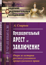 | Полное название книги | А. Смирнов Предварительный арест и заключение. Очерк из истории русского уголовного процессуального права |