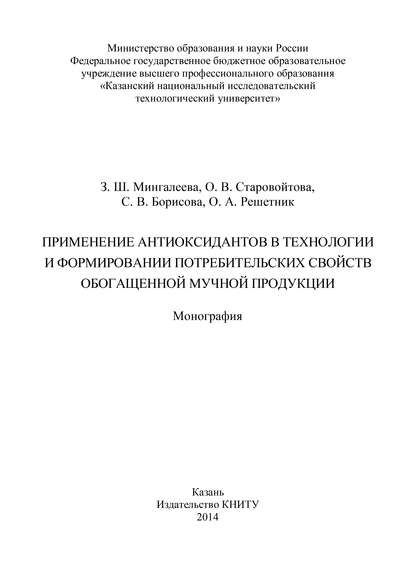 | Полное название книги | О. А. Решетник, С. В. Борисова, З. Ш. Мингалеева, О. В. Старовойтова Применение антиоксидантов в технологии и формировании потребительских свойств обогащенной мучной продукции |
