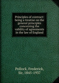 Principles of contract. Being a treatise on the general principles concerning the validity of agreements in the law of England. Воспроизведено в оригинальной авторской орфографии издания 1885 года (издательство "London : Stevens"). Это и многое другое вы найдете в книге Principles of contract (Frederick Pollock)