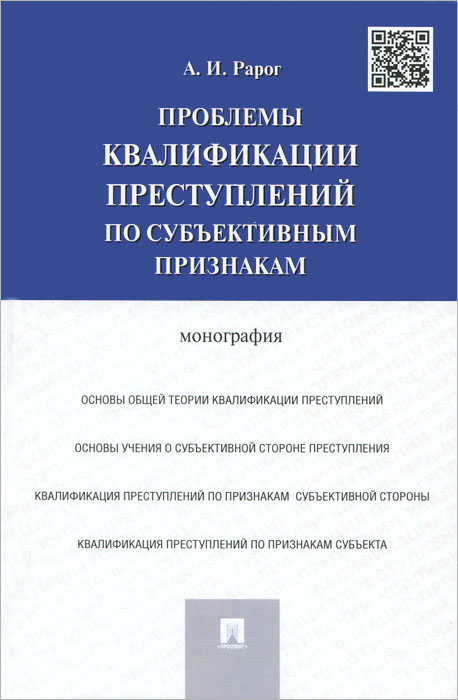 | Полное название книги | А. И. Рарог Проблемы квалификации преступлений по субъективным признакам.Монография.-М.:Проспект,2015 |