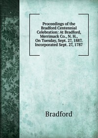 | Полное название книги | Bradford Proceedings of the Bradford Centennial Celebration: At Bradford, Merrimack Co., N. H., On Tuesday, Sept. 27, 1887. Incorporated Sept. 27, 1787 |