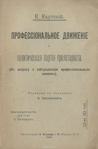 | Полное название книги | К. Каутский Профессиональное движение и политическая партия пролетариата |