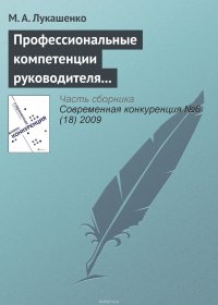 Подробная информация о книге «Профессиональные компетенции руководителя как фактор конкурентоспособности компании М. А. Лукашенко». Сайт не предоставляет возможности читать онлайн или скачать бесплатно книгу «Профессиональные компетенции руководителя как фактор конкурентоспособности компании М. А. Лукашенко».