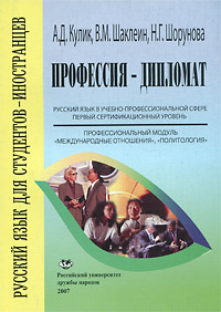| Полное название книги | А. Д. Кулик, Н. Г. Шорунова, В. М. Шаклеин Профессия - дипломат: Русский язык в учебно - профессиональной сфере. Проф.модуль"Международные отношения", "Политология" |