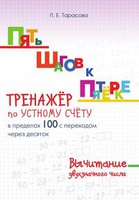 | Полное название книги | Л. Е. Тарасова ПЯТЬ ШАГОВ К ПЯТЕРКЕ. ТРЕНАЖЕР по УСТНОМУ СЧЕТУ в пределах 100 с переходом через десяток. Вычитание двухзначного числа |