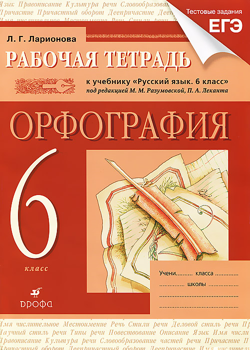 | Полное название книги | Л. Г. Ларионова Рабочая тетрадь к учебнику "Русский язык. 6 класс". Орфография |