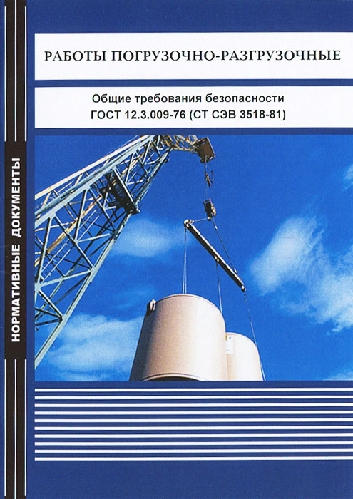 Стандарт полностью соответствует СТ СЭВ 3518-81. Это и многое другое вы найдете в книге Работы погрузочно-разгрузочные. Общие требования безопасности. ГОСТ 12.3.009-76 (СТ СЭВ 3518-81) (Составители: Д. Григорьев, В.)