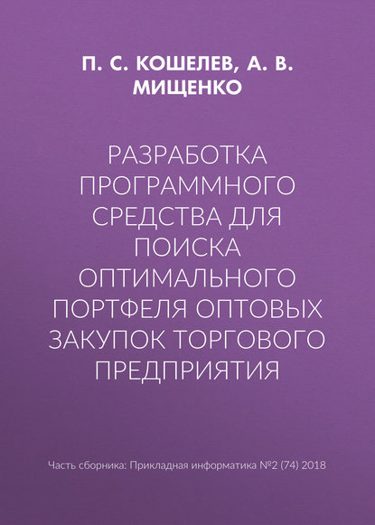 | Полное название книги | А. В. Мищенко, П. С. Кошелев Разработка программного средства для поиска оптимального портфеля оптовых закупок торгового предприятия |