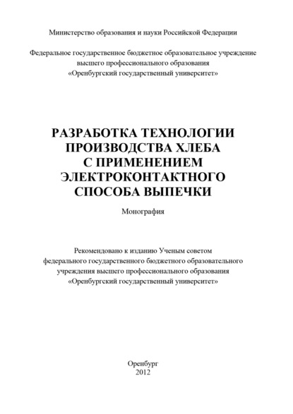 | Полное название книги | Коллектив авторов Разработка технологии производства хлеба с применением электроконтактного способа выпечки |