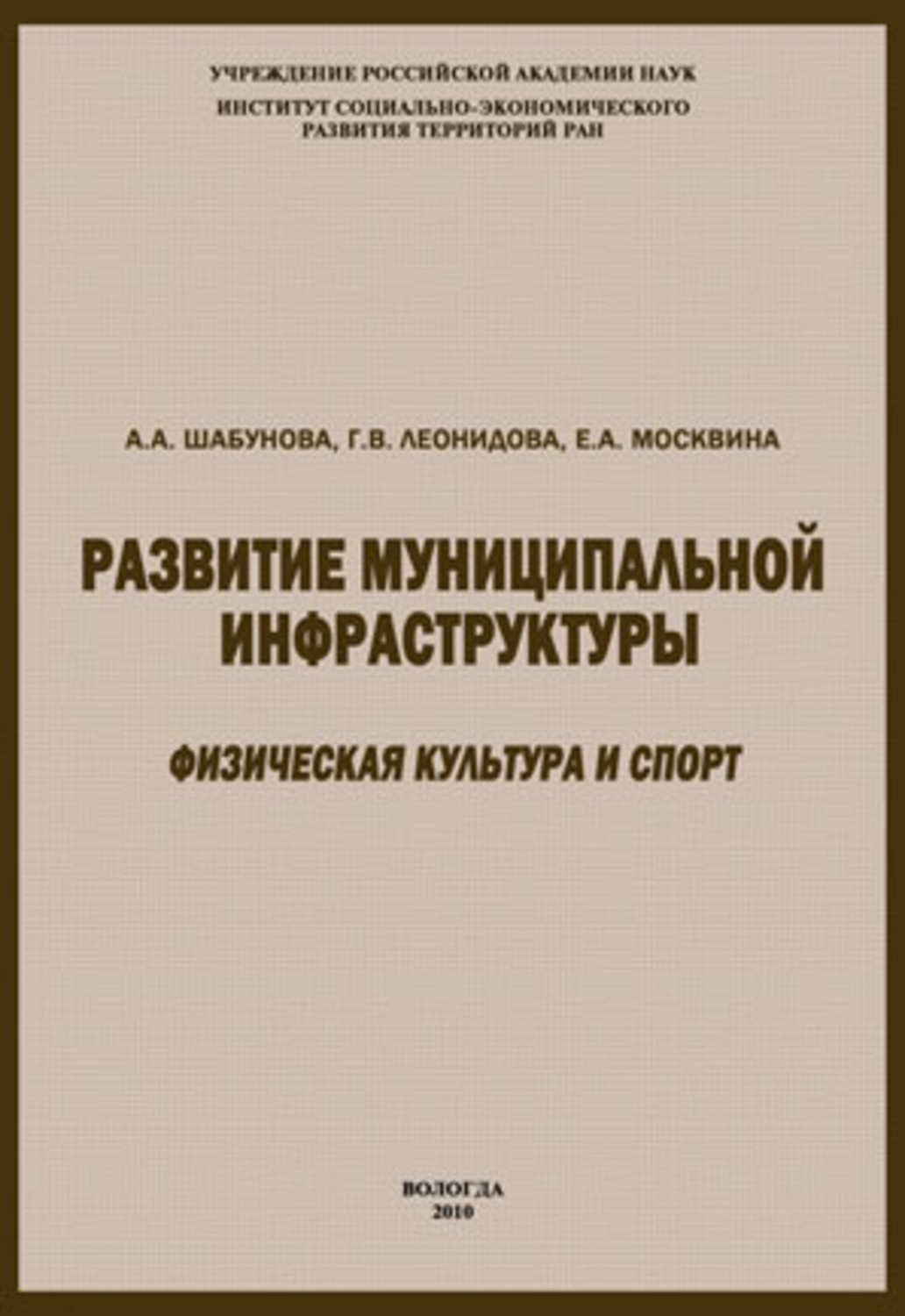 Подробная информация о книге «Развитие муниципальной инфраструктуры: физическая культура и спорт Москвина Елена Алексеевна, Шабунова Александра Анатольевна, Леонидова Галина Валентиновна». Сайт не предоставляет возможности читать онлайн или скачать бесплатно книгу «Развитие муниципальной инфраструктуры: физическая культура и спорт Москвина Елена Алексеевна, Шабунова Александра Анатольевна, Леонидова Галина Валентиновна».