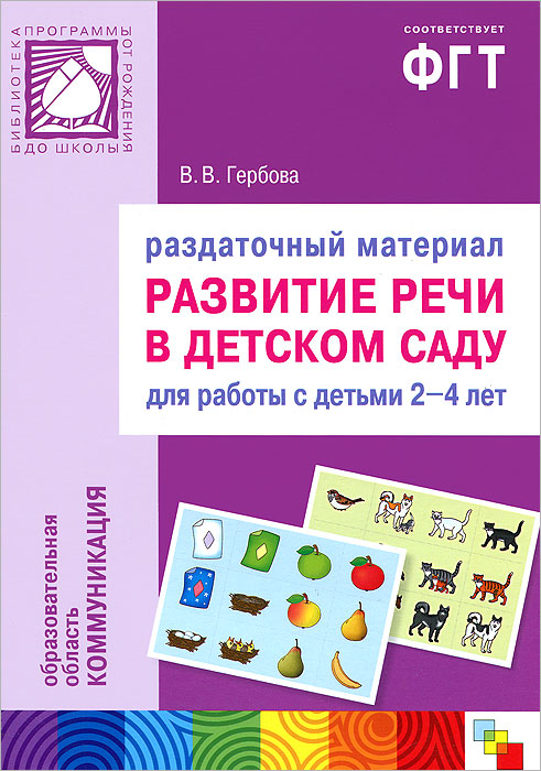 | Полное название книги | В. В. Гербова Развитие речи в детском саду. Раздаточный материал. Для работы с детьми 2-4 лет |