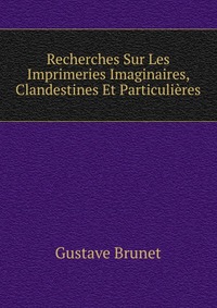 | Полное название книги | Gustave Brunet Recherches Sur Les Imprimeries Imaginaires, Clandestines Et Particulieres |