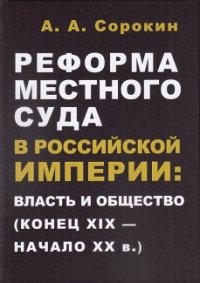 | Полное название книги | А. А. Сорокин Реформа местного суда в Российской империи: власть и общество (конец XIX - начало XX в.) |